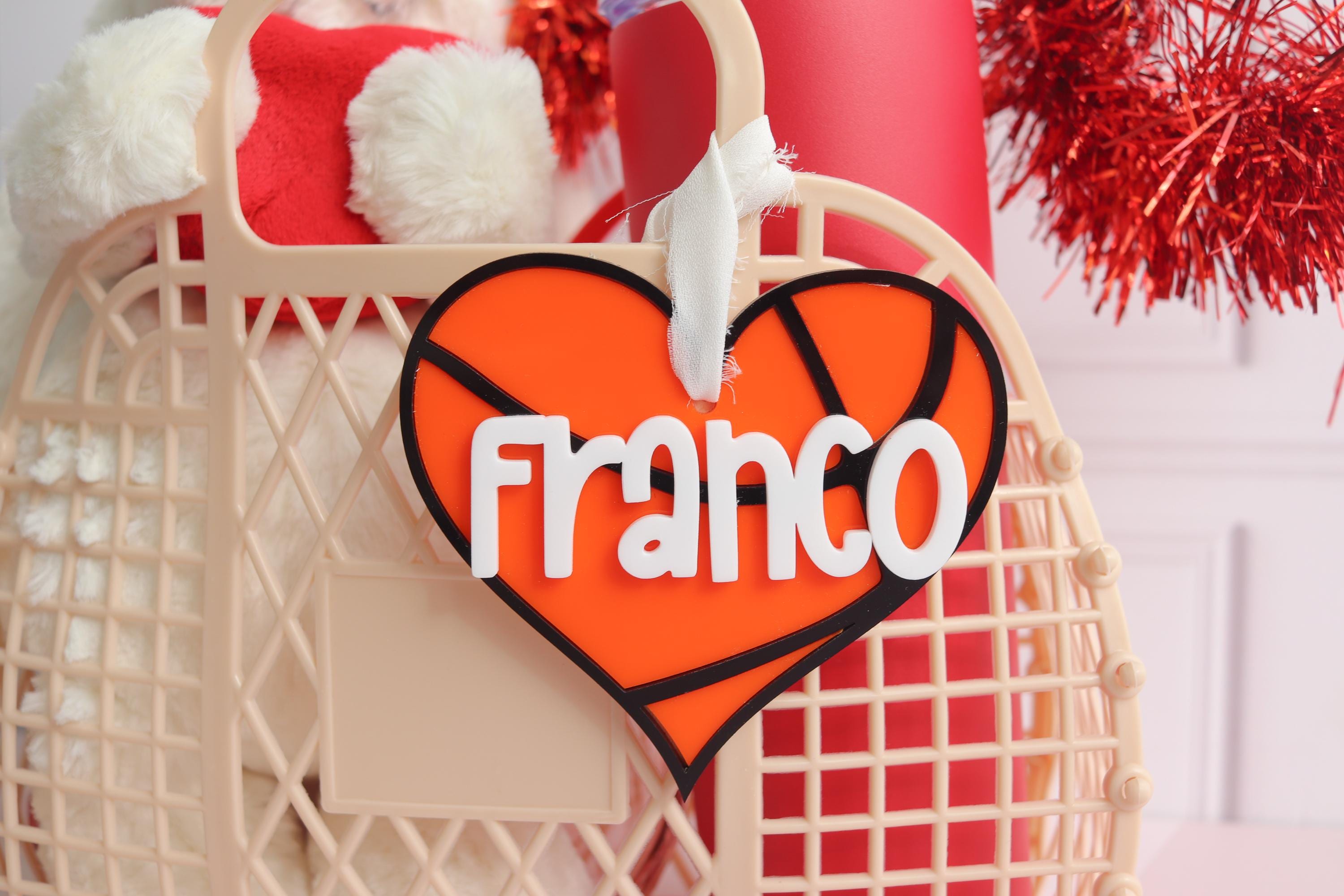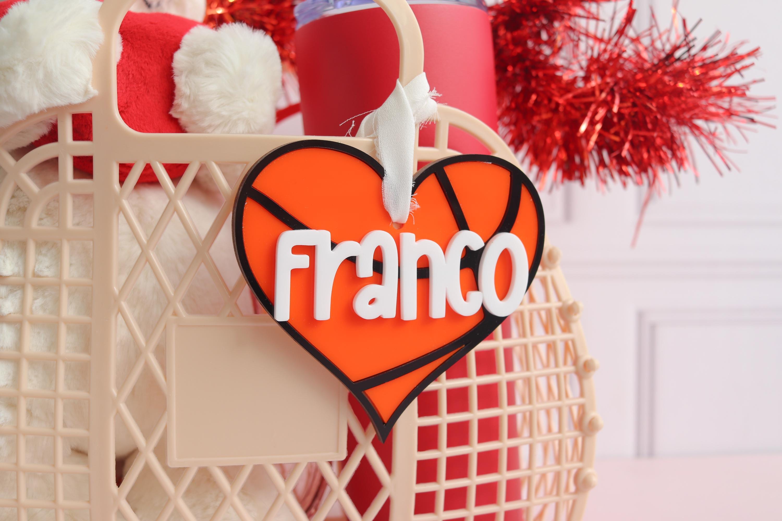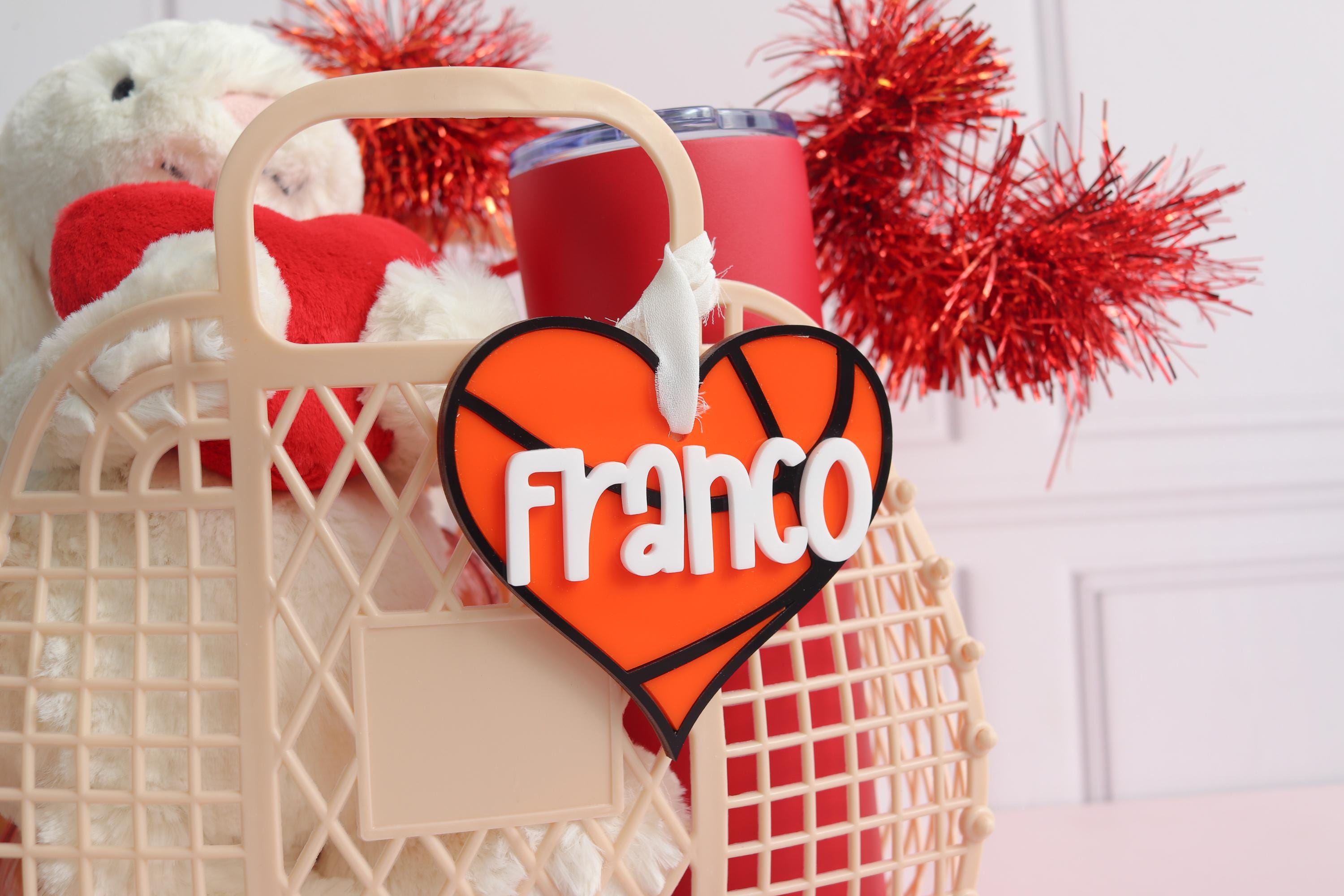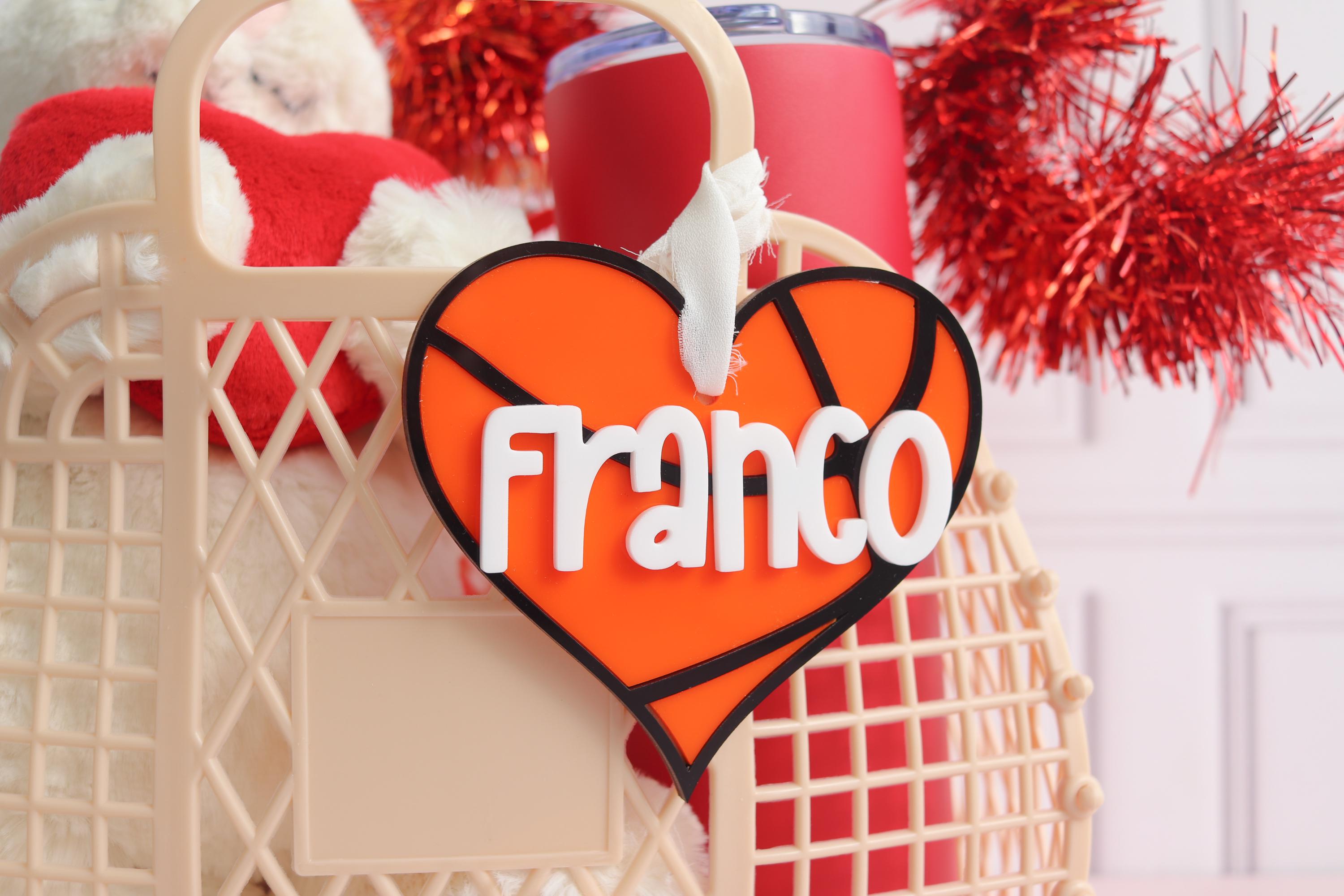 Add the sweetest personalized touch with this basketball name tag! Designed with a heart shape and raised name lettering, this custom tag is fully customizable so you can choose both the font and the font color to match your style or gift theme perfectly.