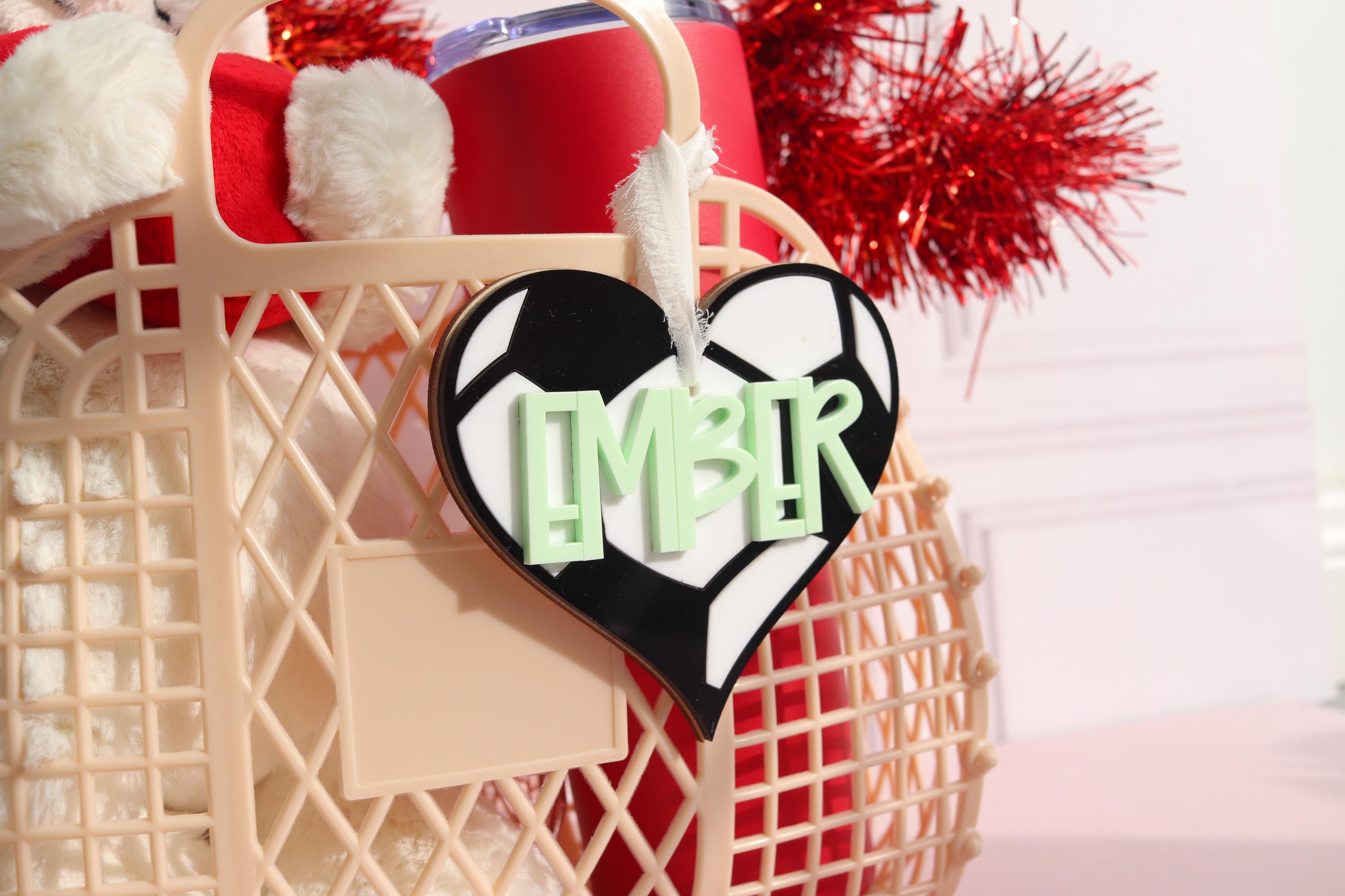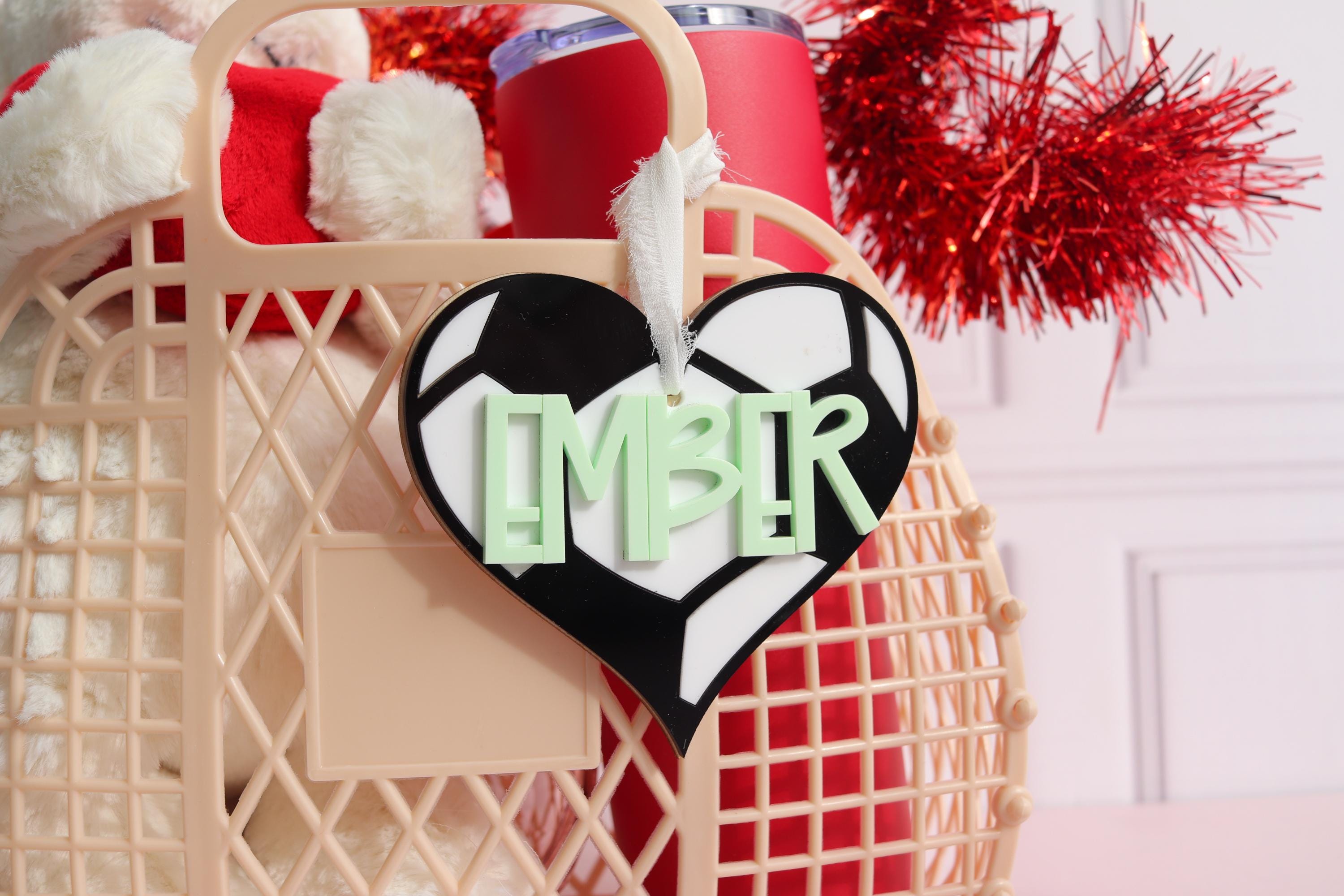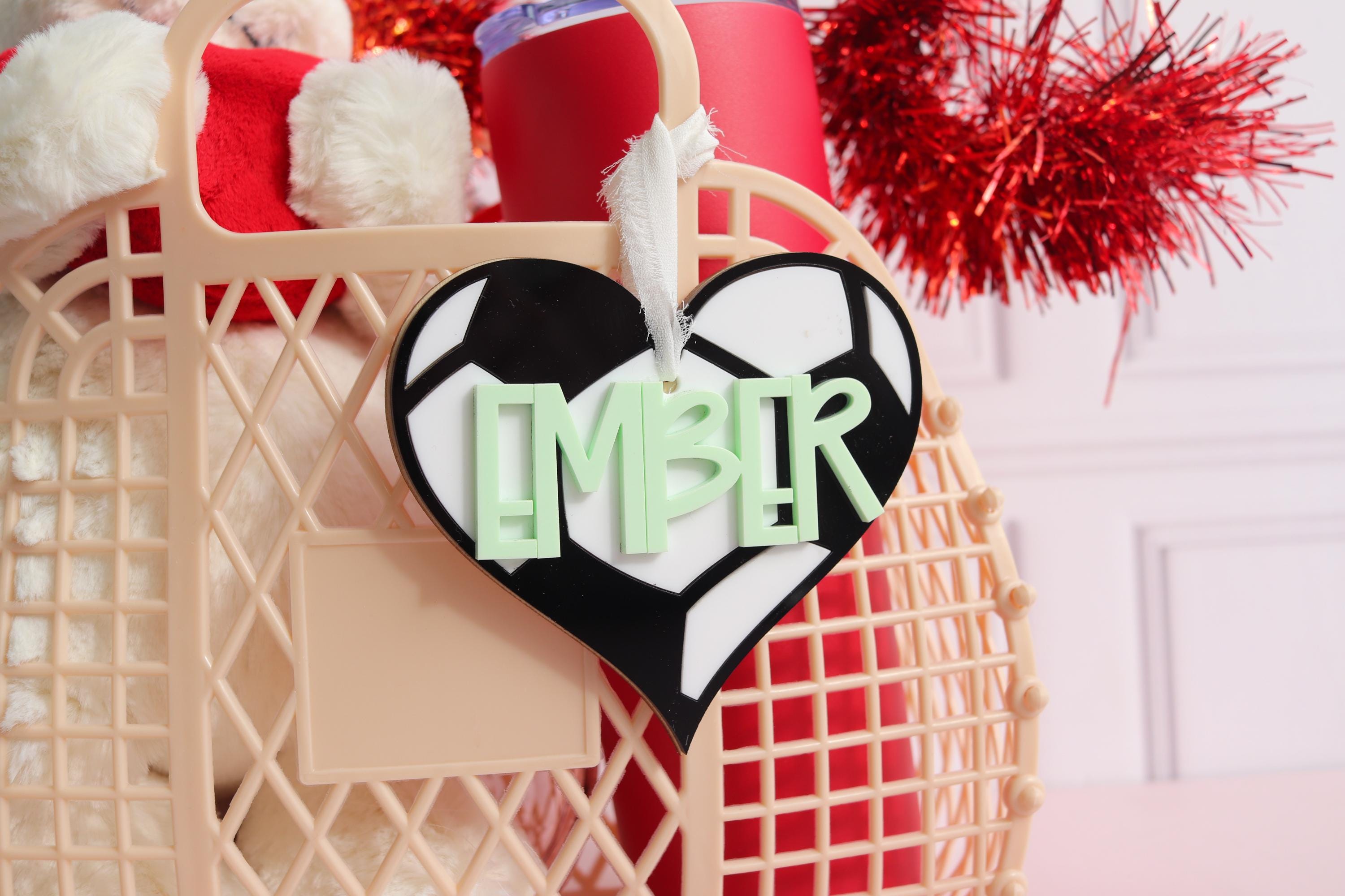 Add the sweetest personalized touch with this Soccer name tag! Designed with a heart shape and raised name lettering, this custom tag is fully customizable so you can choose both the font and the font color to match your style or gift theme perfectly.