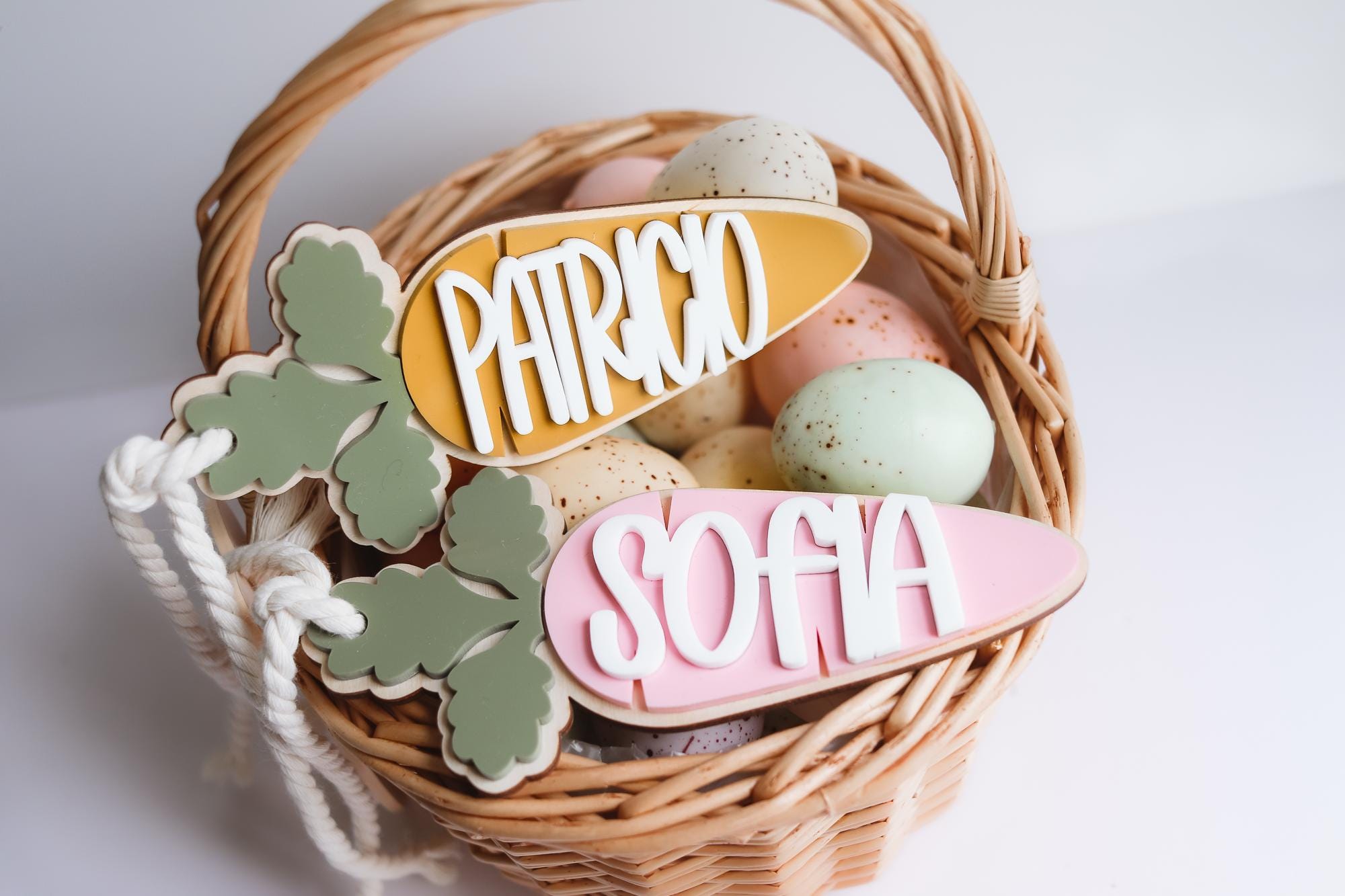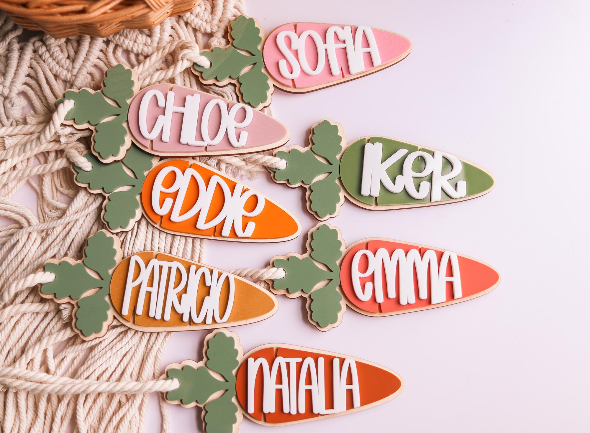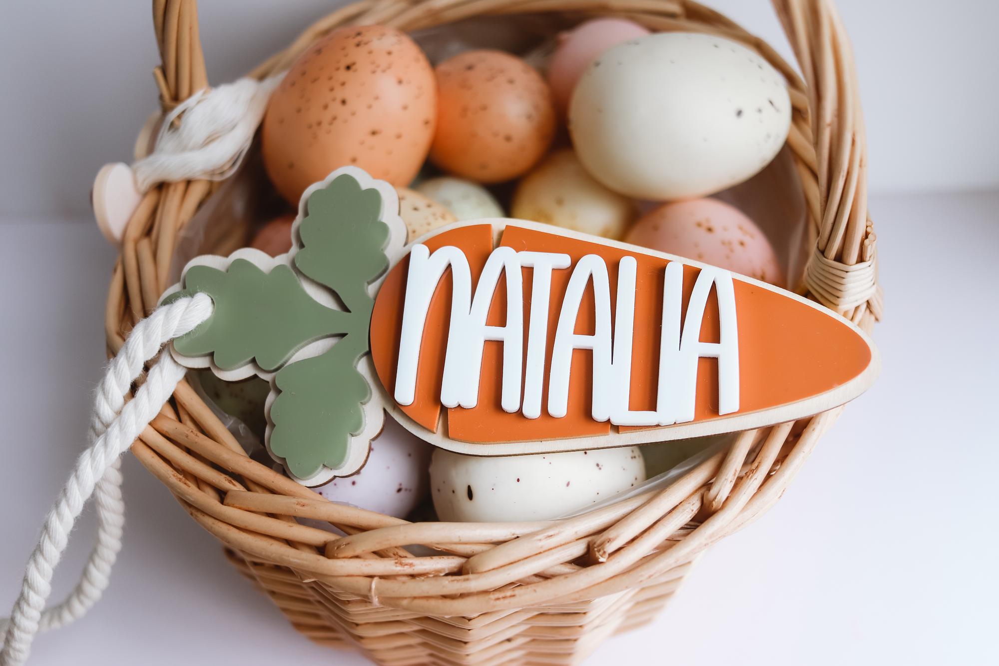 🥕 Personalized Easter Carrot Name Tag – Custom Wooden Basket Tag