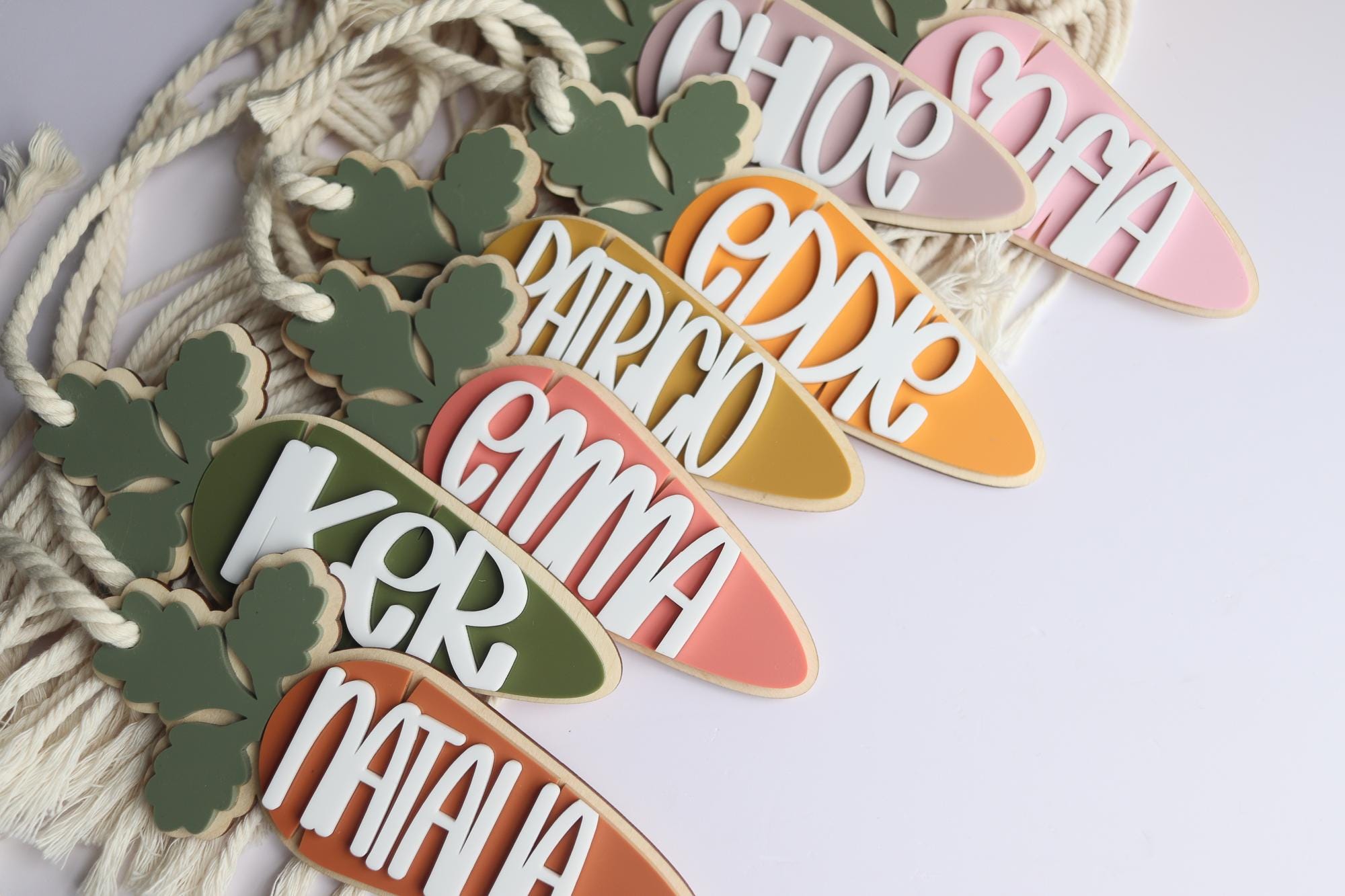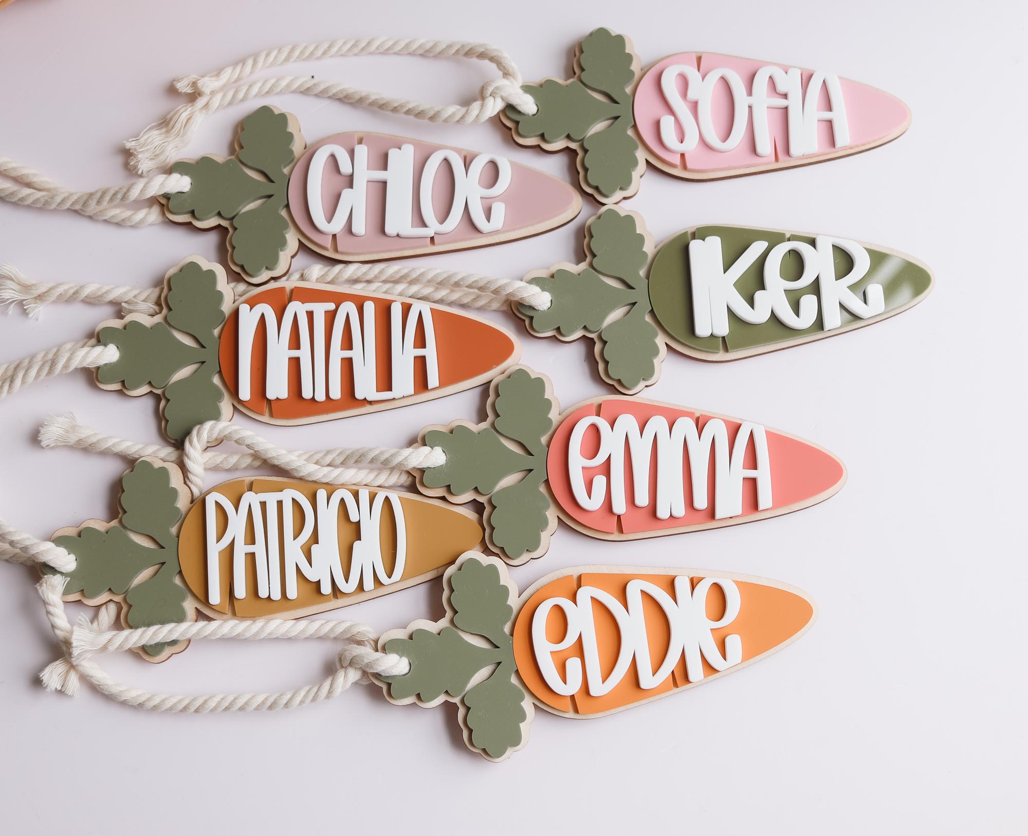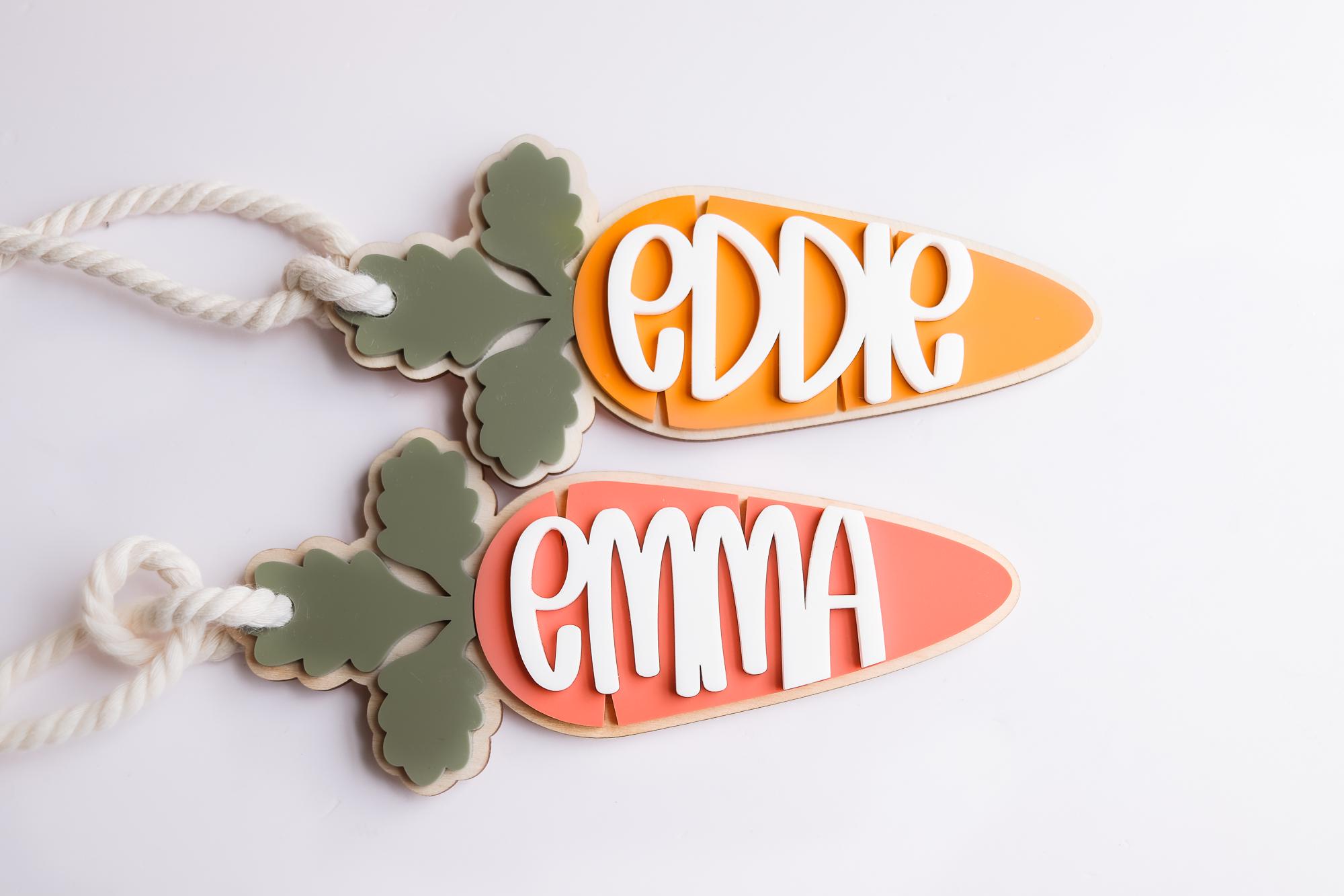 🥕 Personalized Easter Carrot Name Tag – Custom Wooden Basket Tag