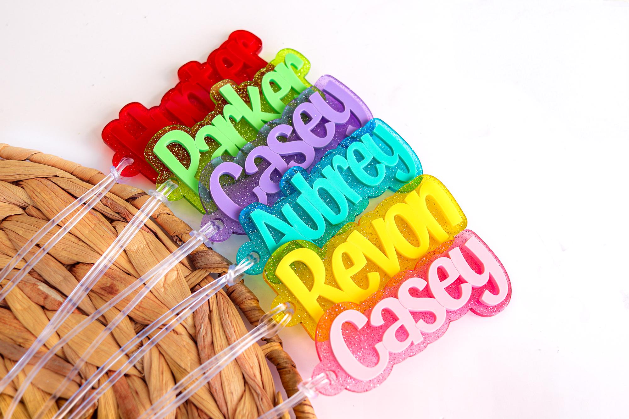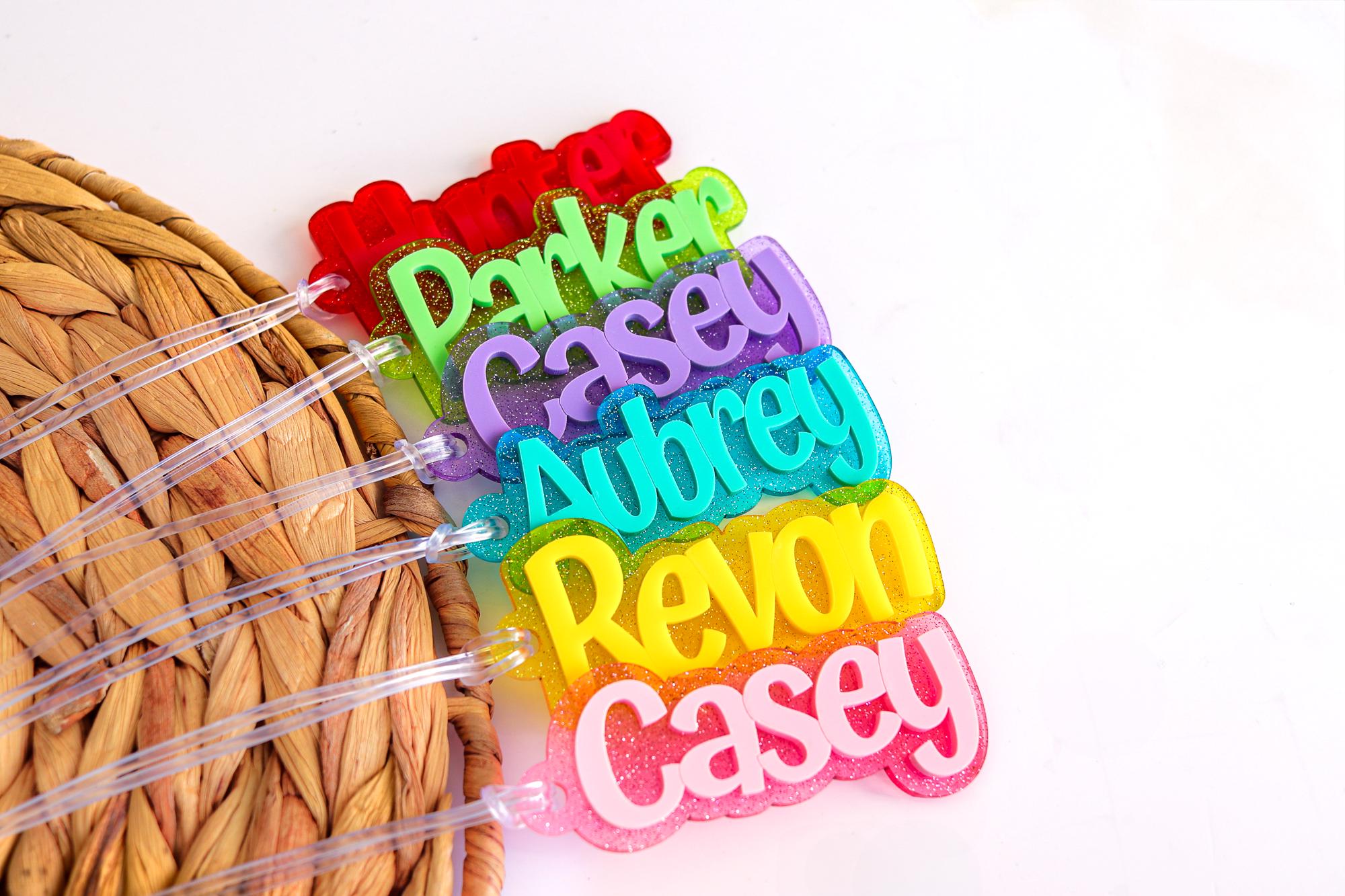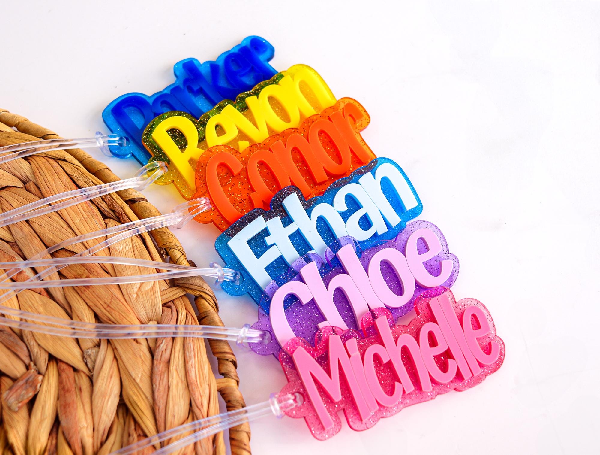 Each keychain is made with premium layered acrylic, combining a beautiful glitter backing with a raised custom name in your favorite color and font. Designed to be durable, lightweight, and eye-catching, these personalized name tags make the perfect gift for kids, teens, teachers, friends, and yourself.