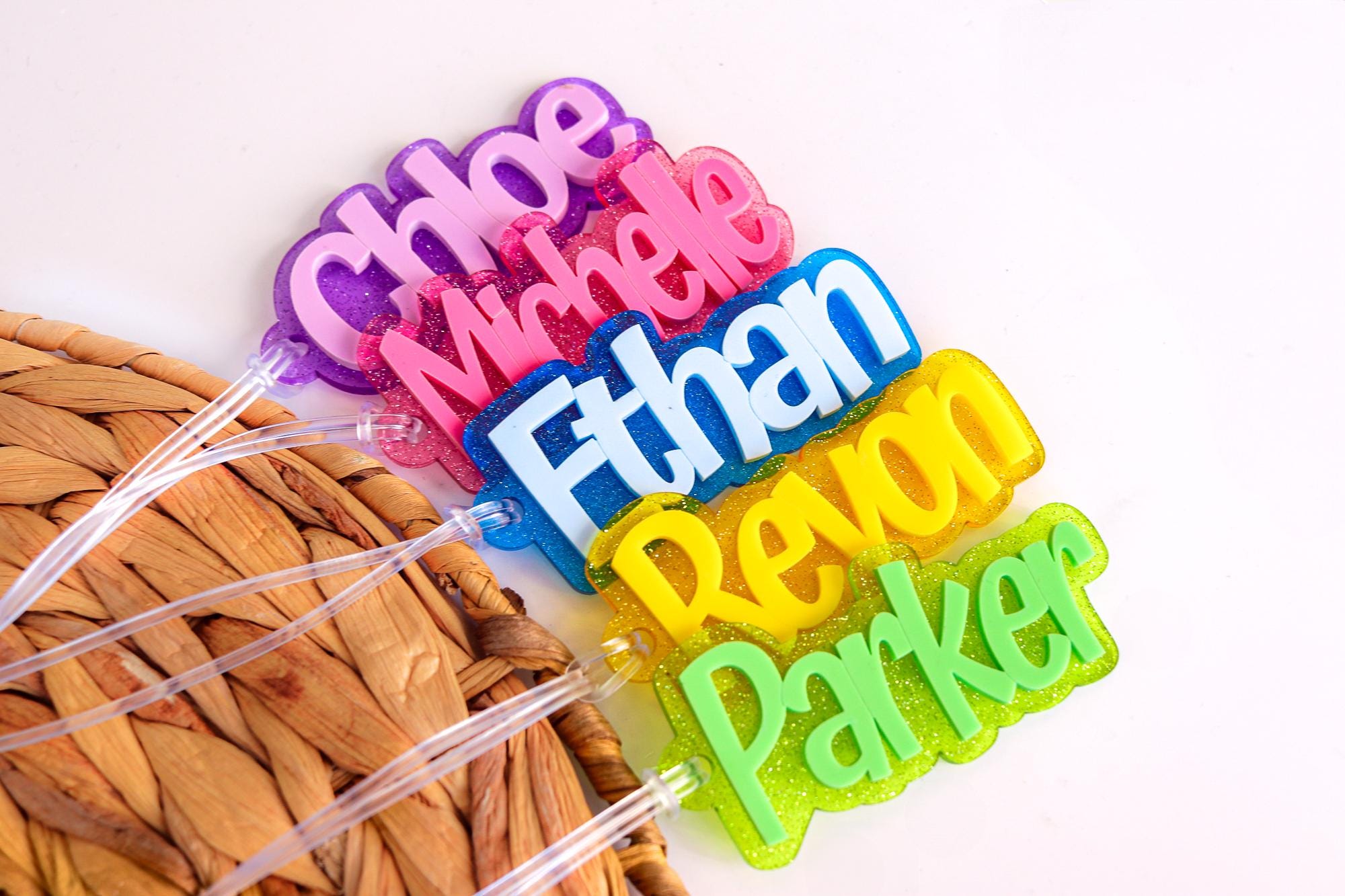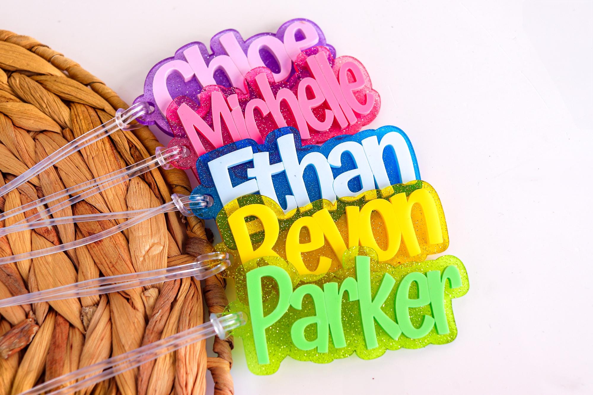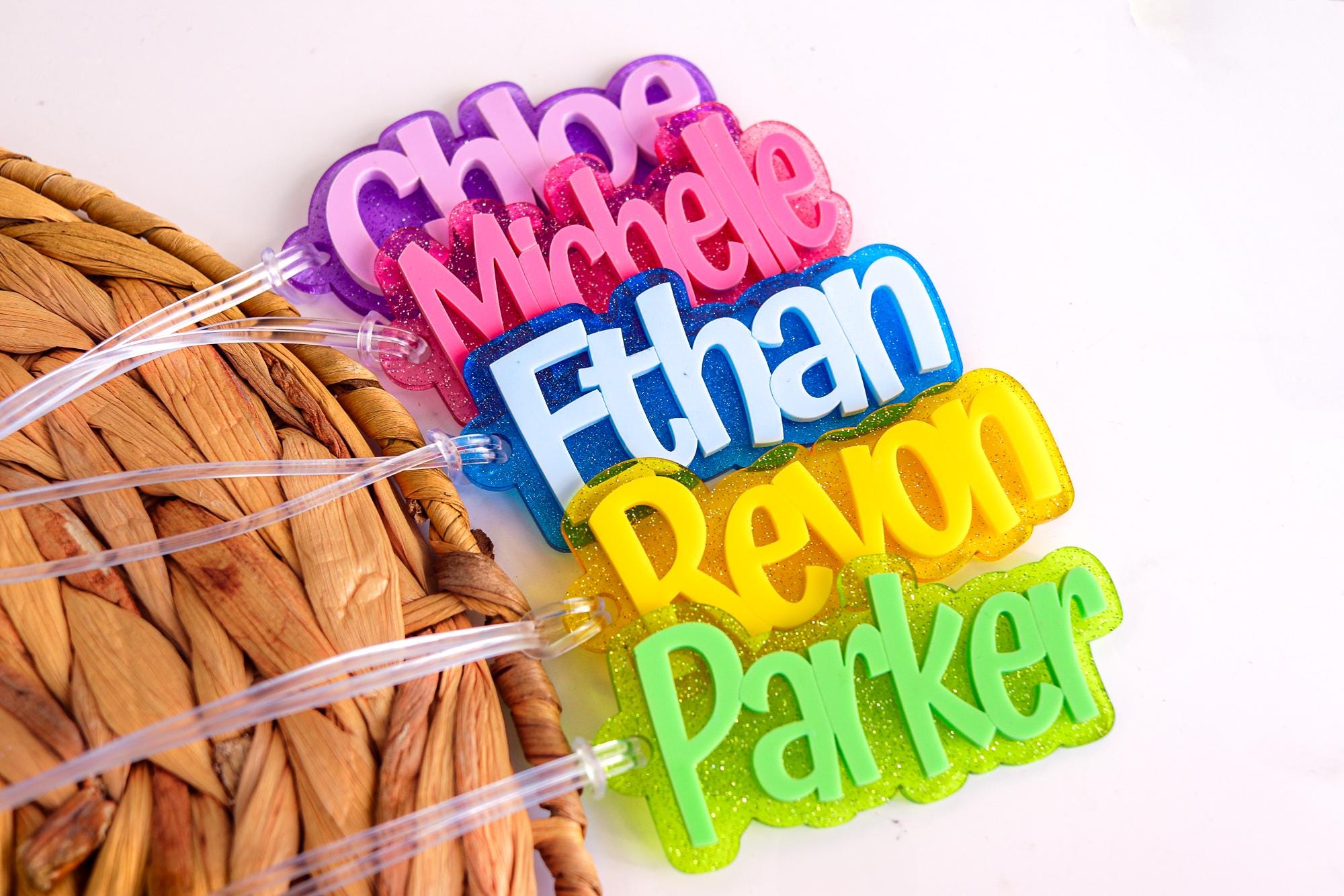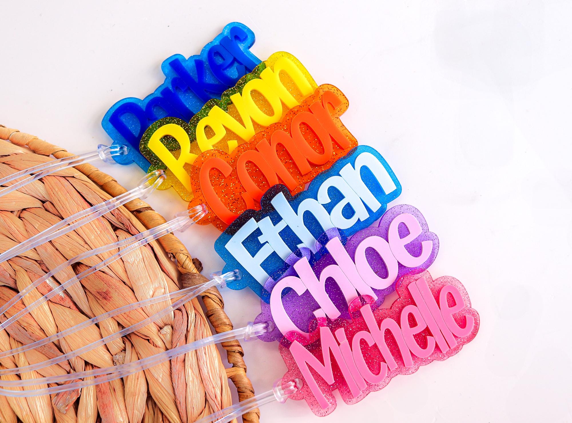 Each keychain is made with premium layered acrylic, combining a beautiful glitter backing with a raised custom name in your favorite color and font. Designed to be durable, lightweight, and eye-catching, these personalized name tags make the perfect gift for kids, teens, teachers, friends, and yourself.