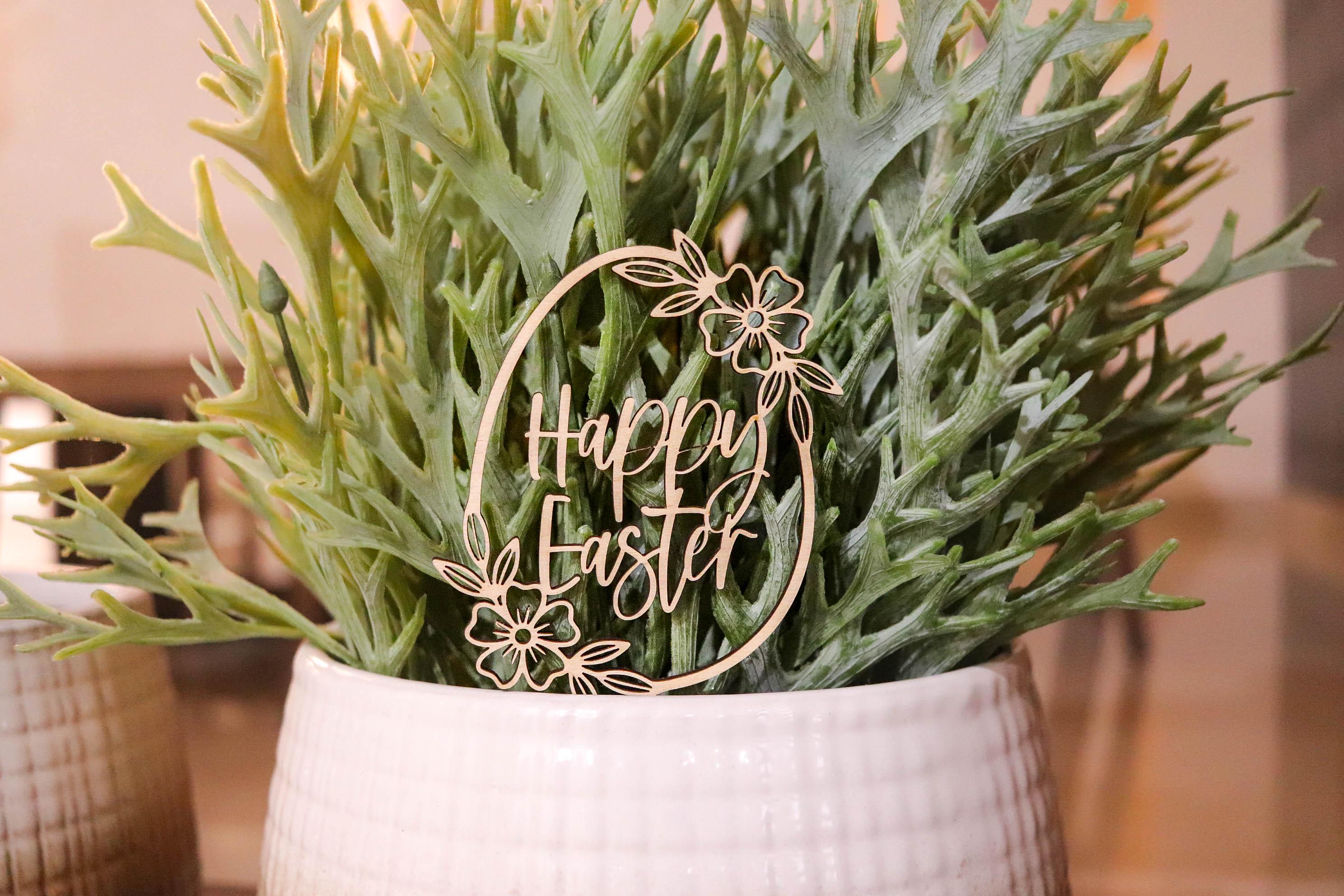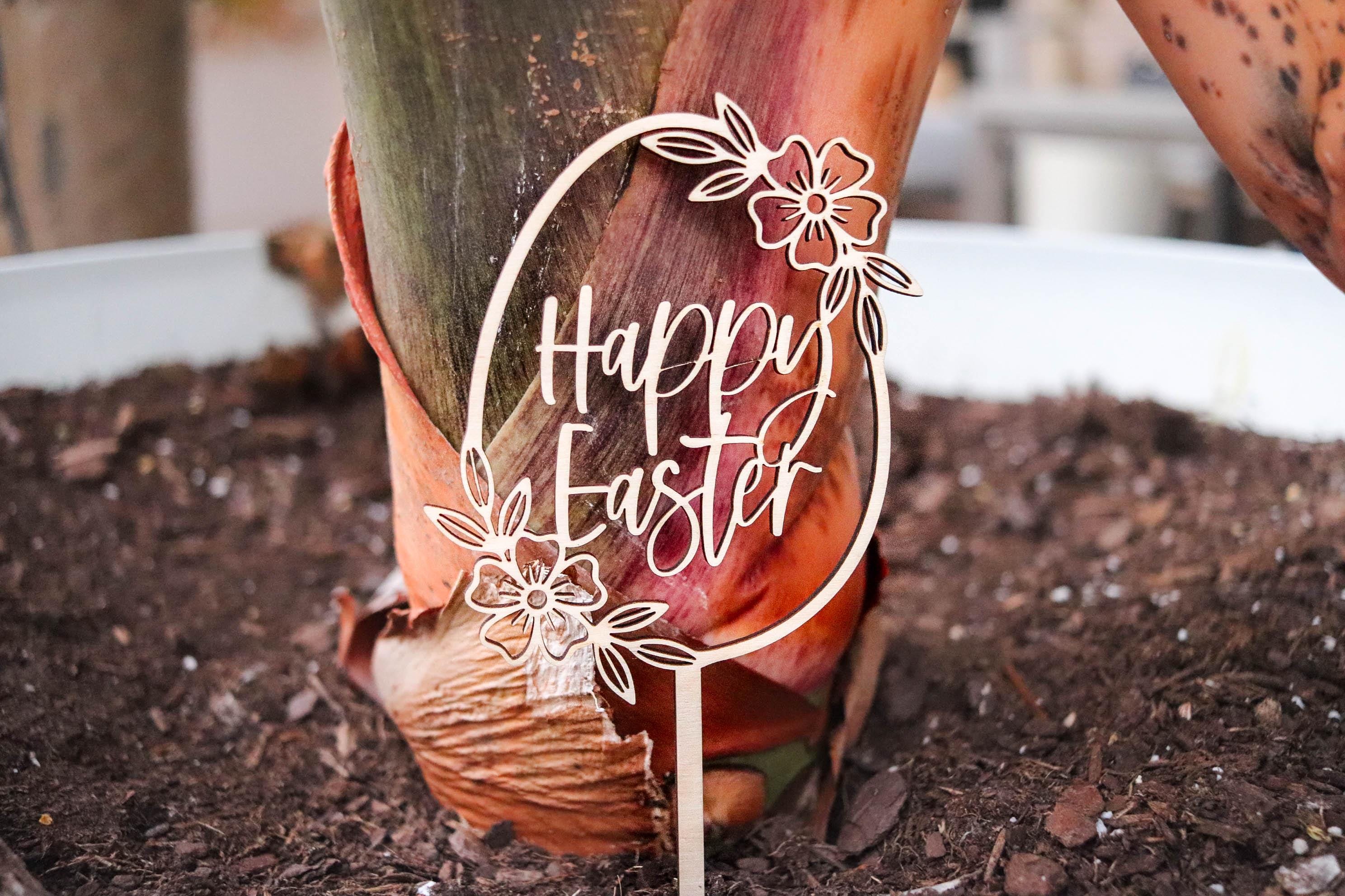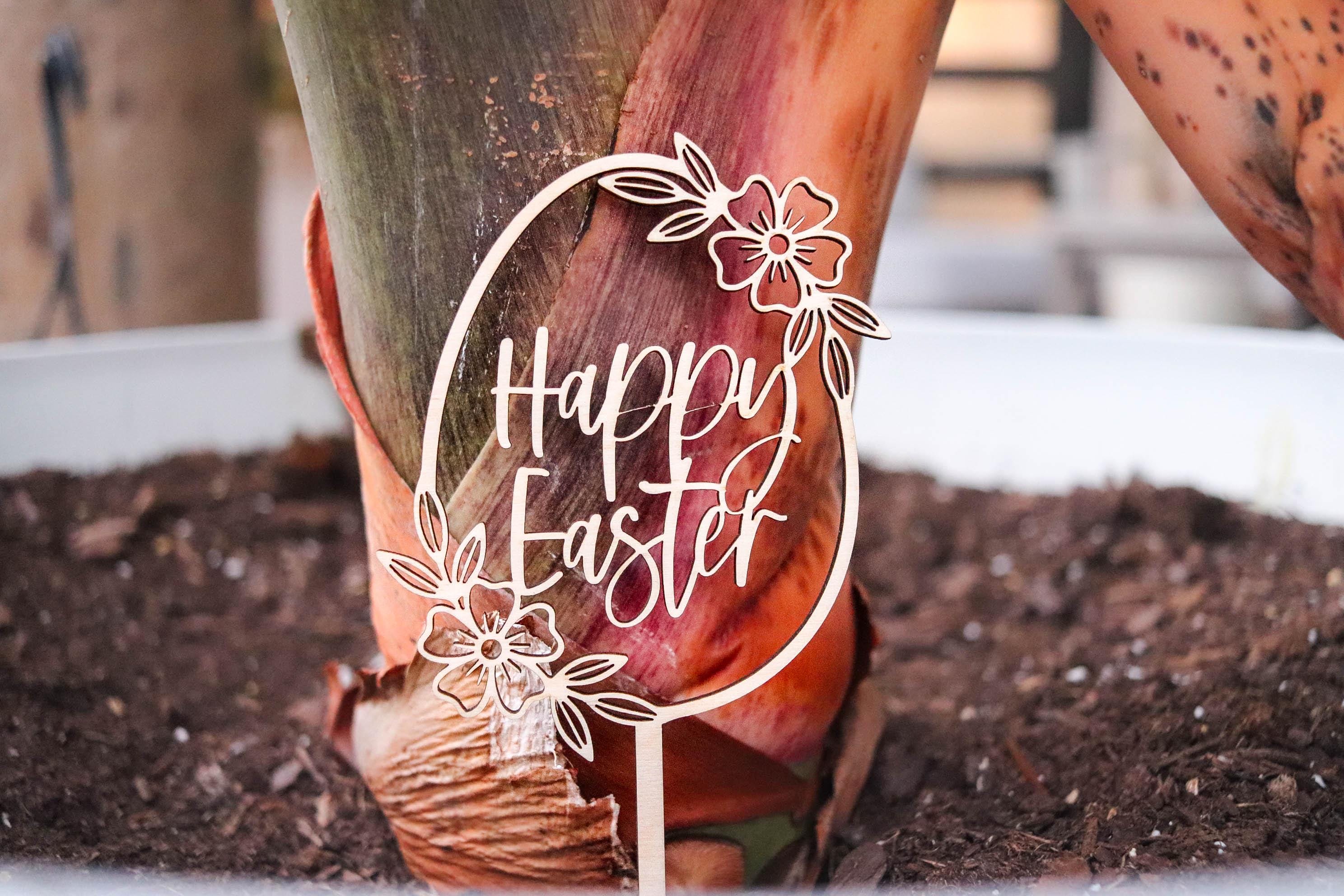 Easter Plant Sign, Flower Pot Decoration, Easter Plant Sticks, Wooden Easter Egg, Christian Home Decor, Spring home decor