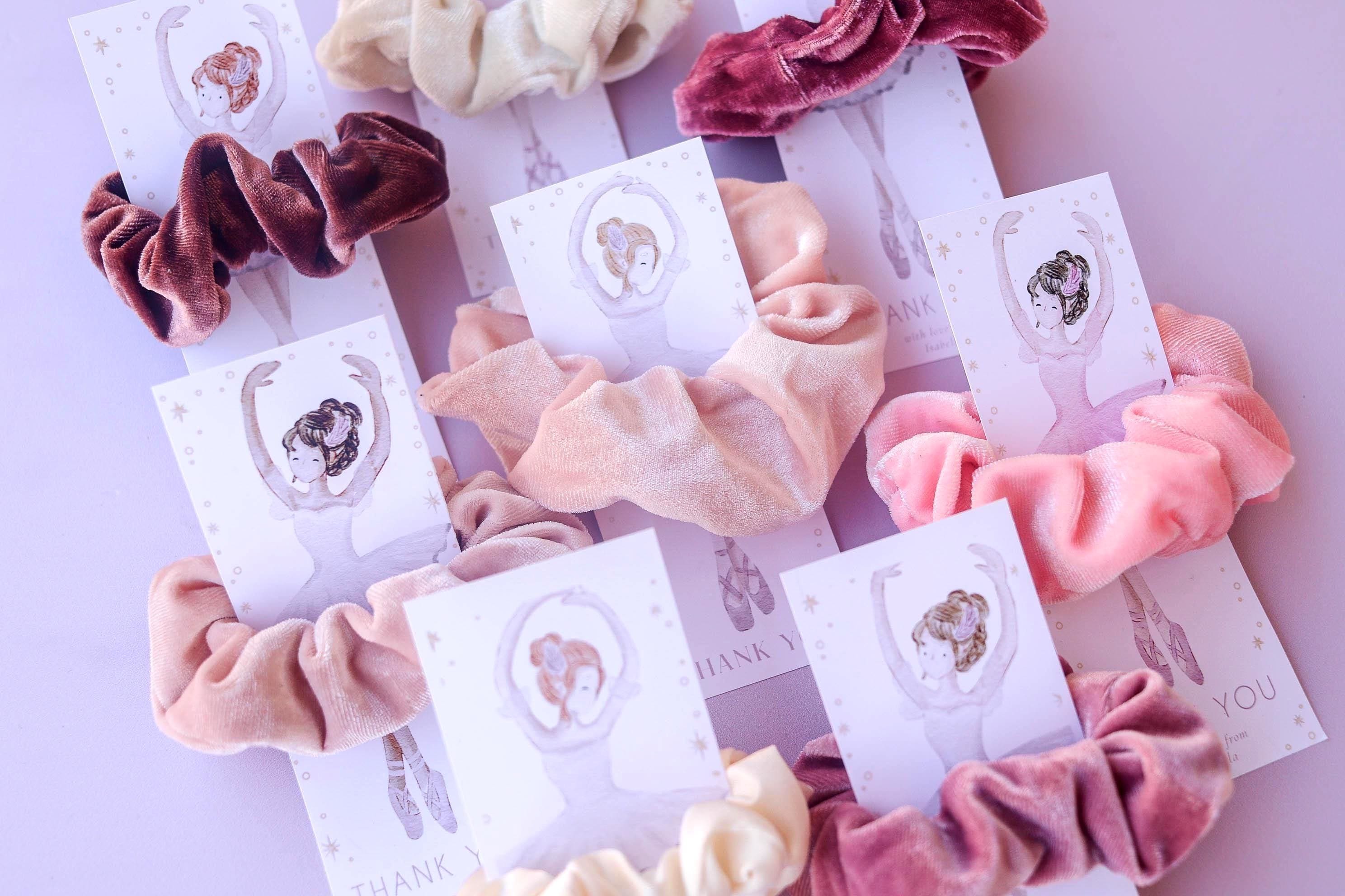 These adorable ballerina-themed scrunchie favors are perfect for ballet birthday parties, dance recitals, studio celebrations, or end-of-season gifts.