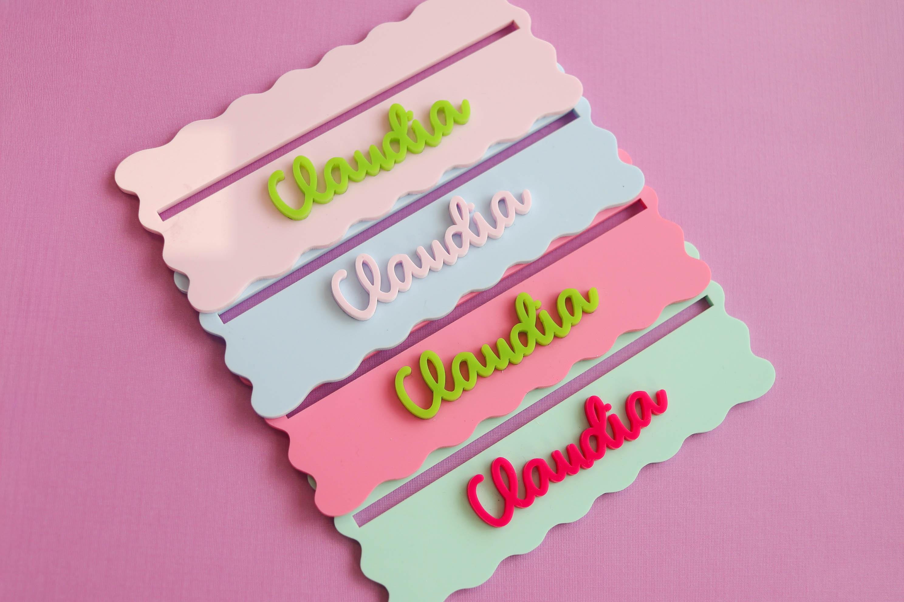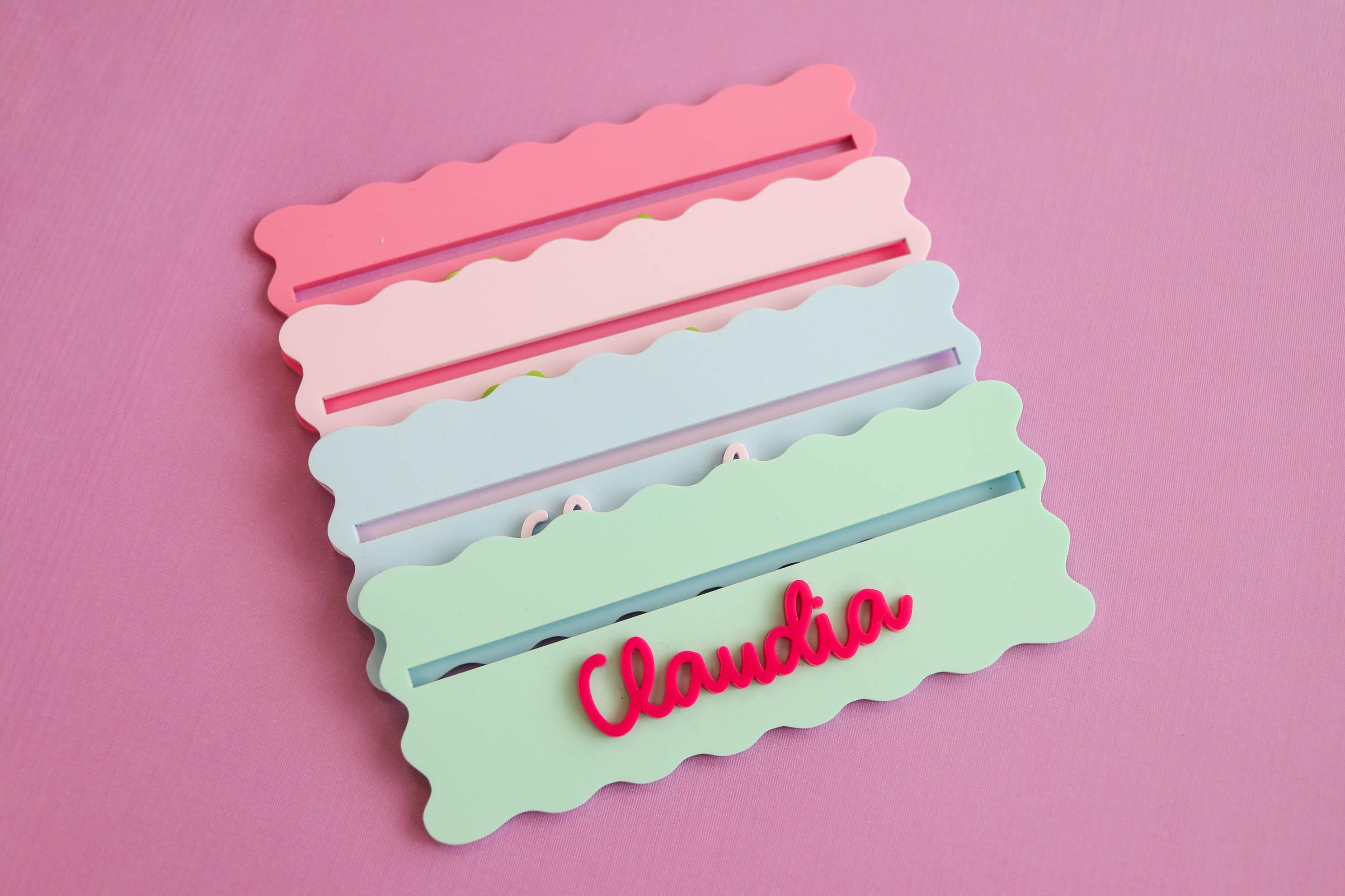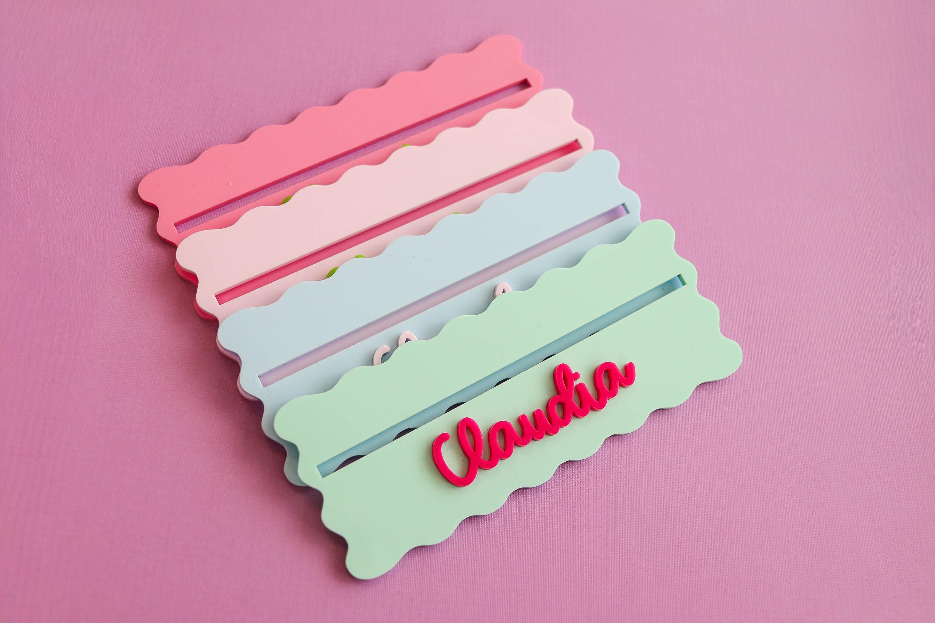 Each row finder is customized with a name and made with layered acrylic for a bright, modern look that stands out on any Mahjong table.