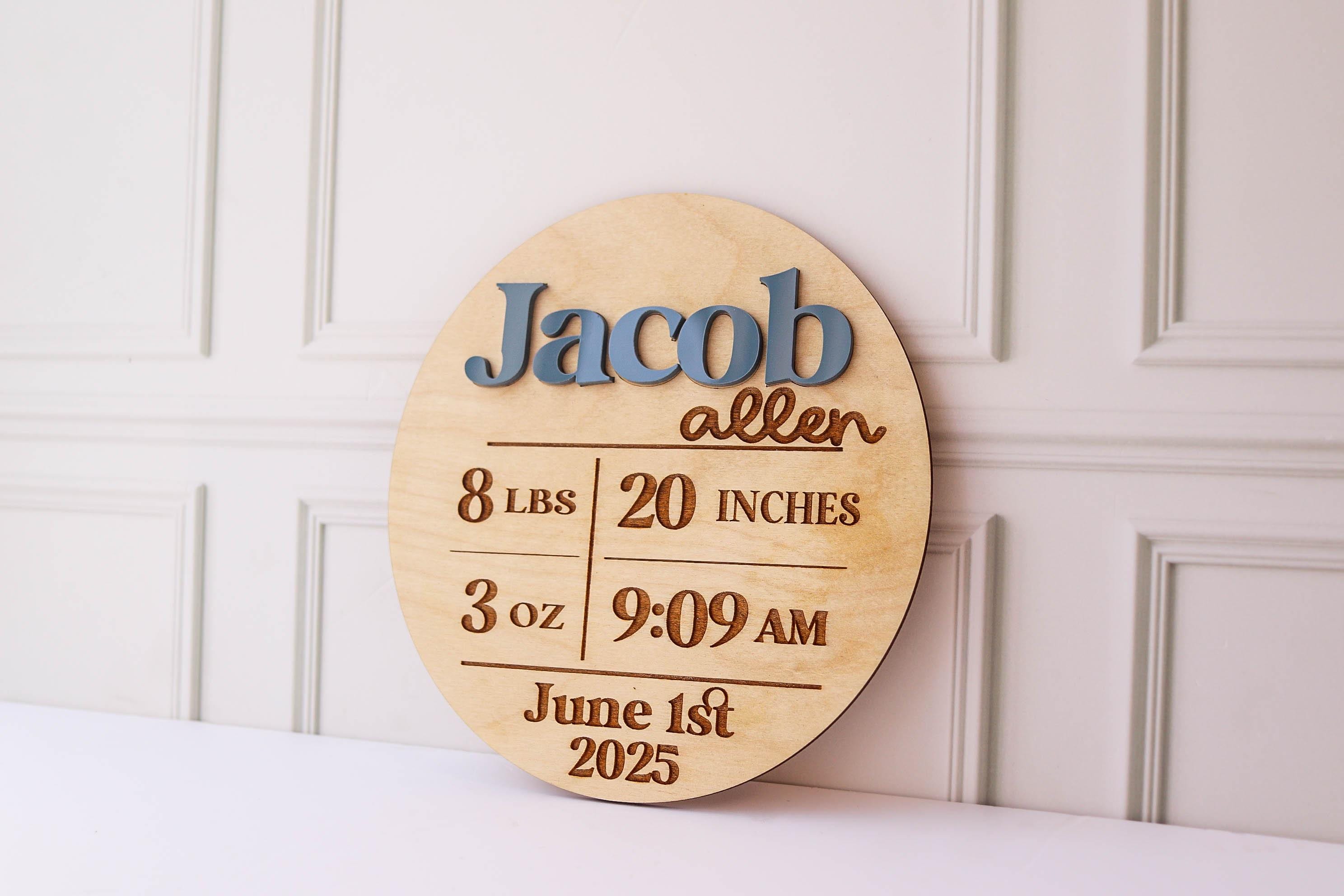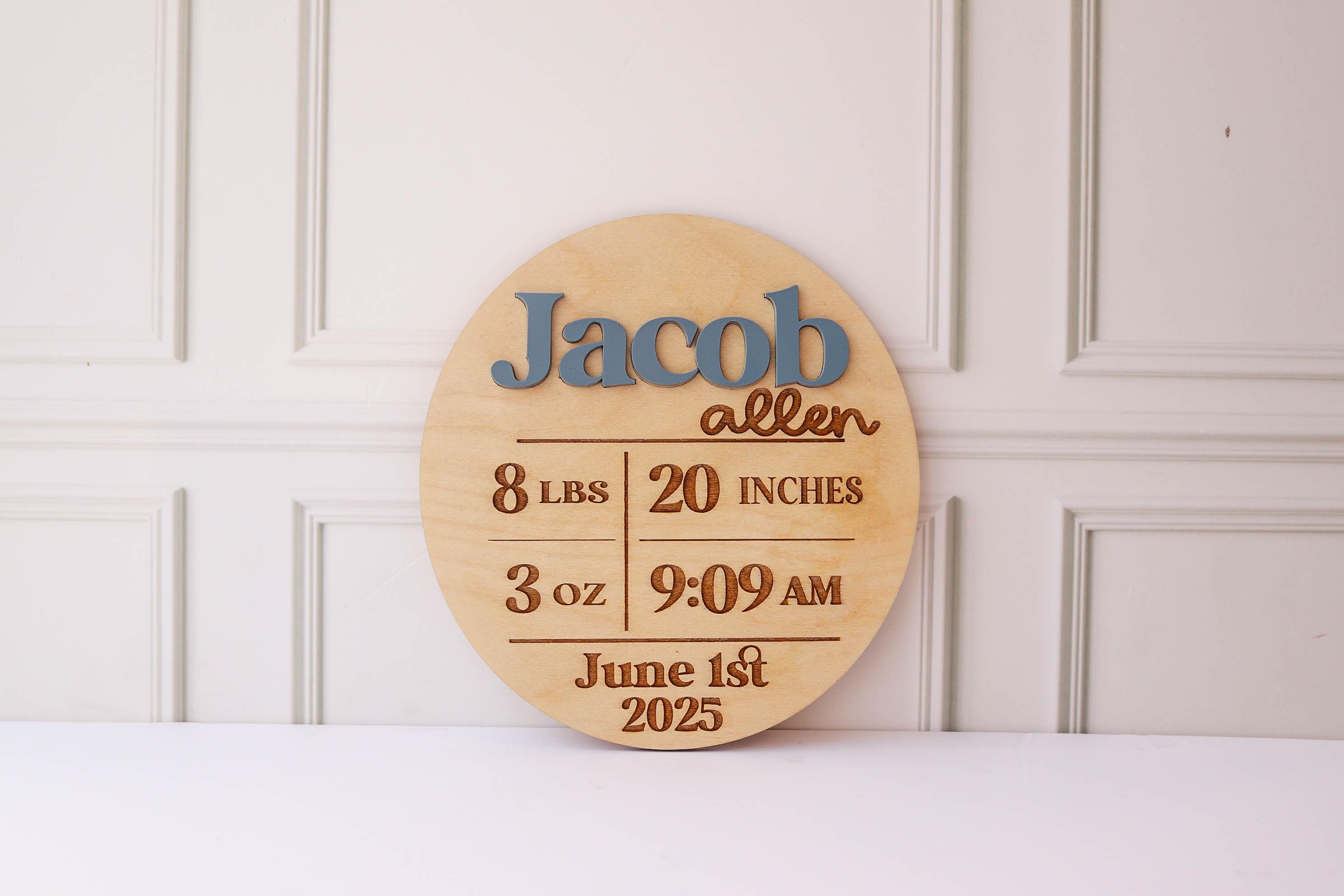 Baby Boy Name Announcement Sign, Birth Announcement Photo Prop, Engraved Photo Prop, Wood Plaque, Hospital Keepsake