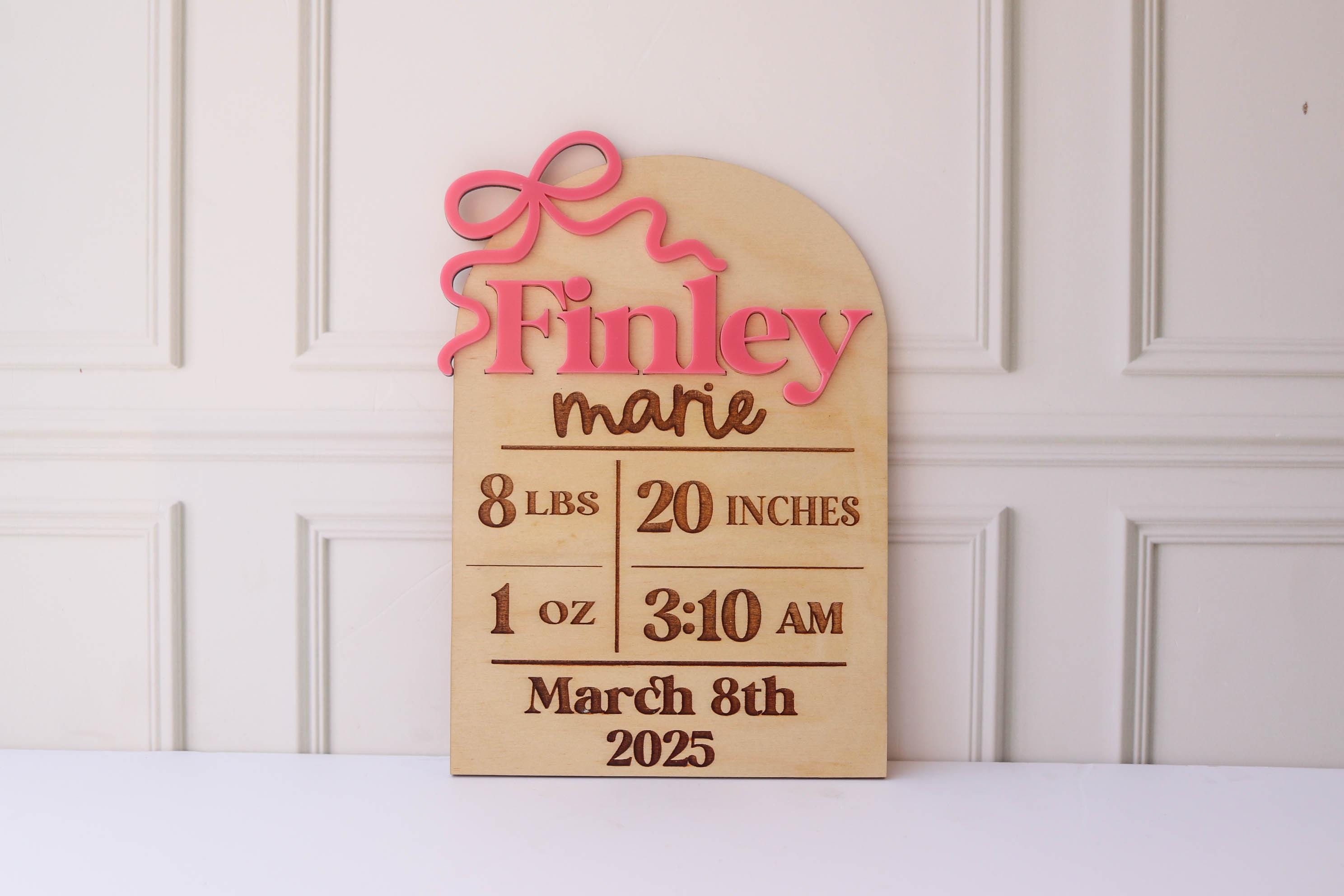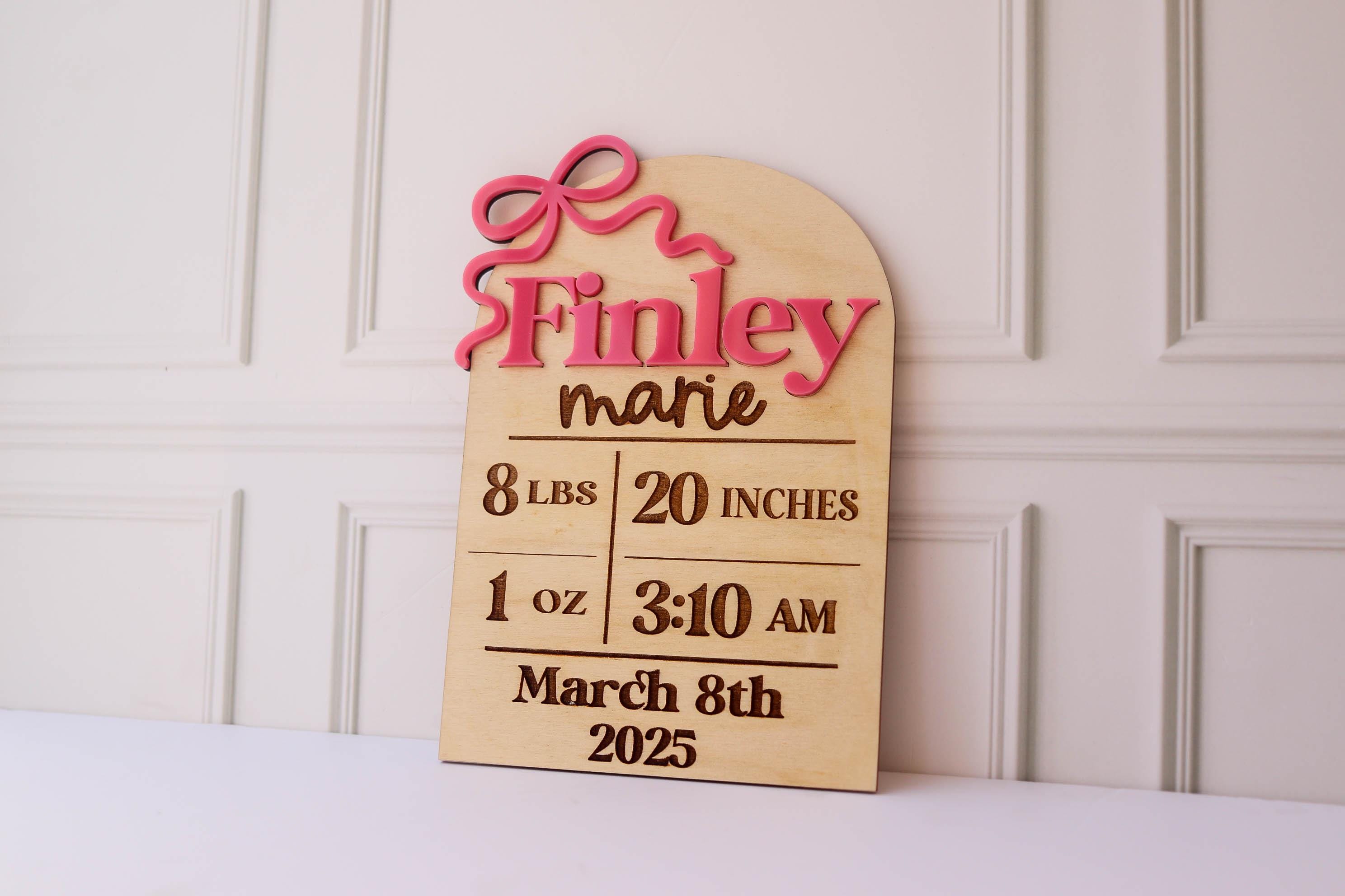 Girl Birth Name Sign Bow Hospital Announcement for Baby Girl Birth Announcement Name Sign Announcement Plaque with Bow