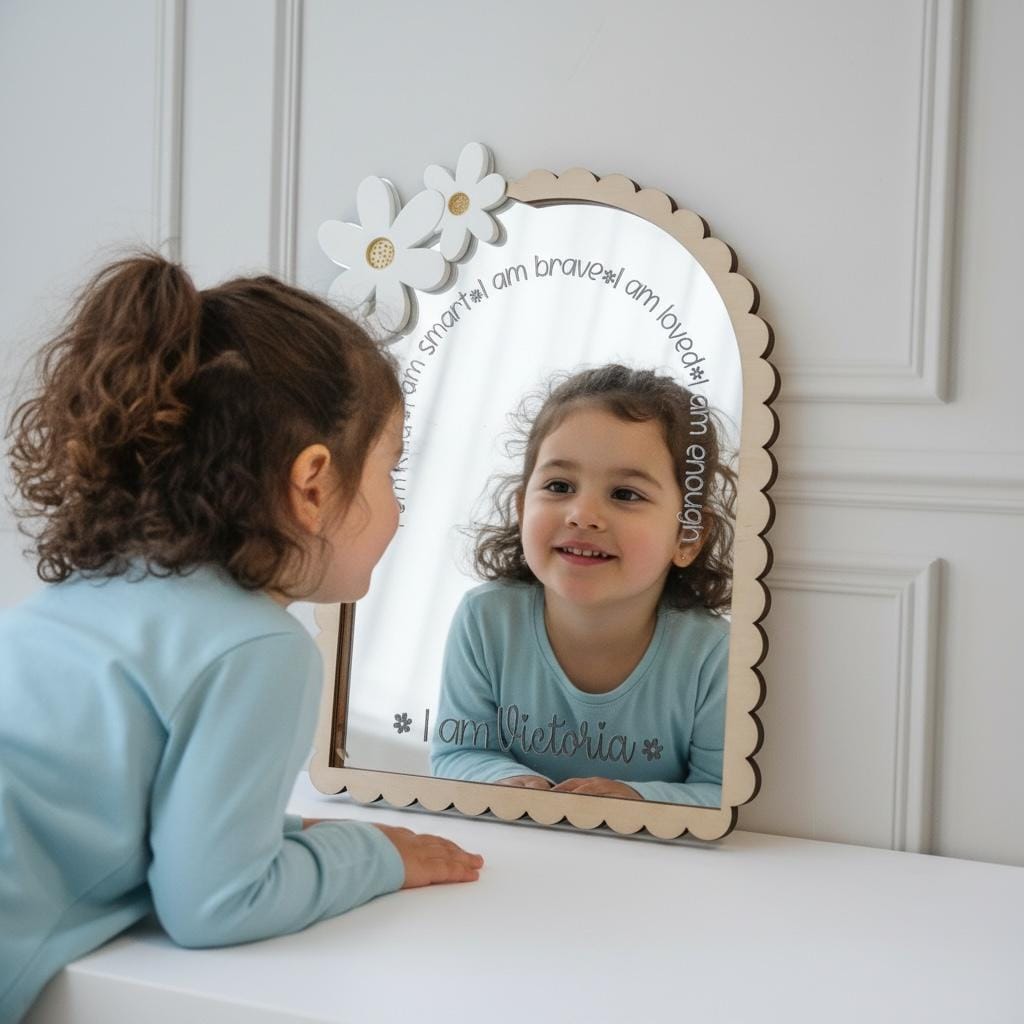 ✨ Personalized Affirmation Mirror for Kids | Custom Name Mirror | Nursery & Girls Room Decor | Positive Affirmations Wall Mirror ✨