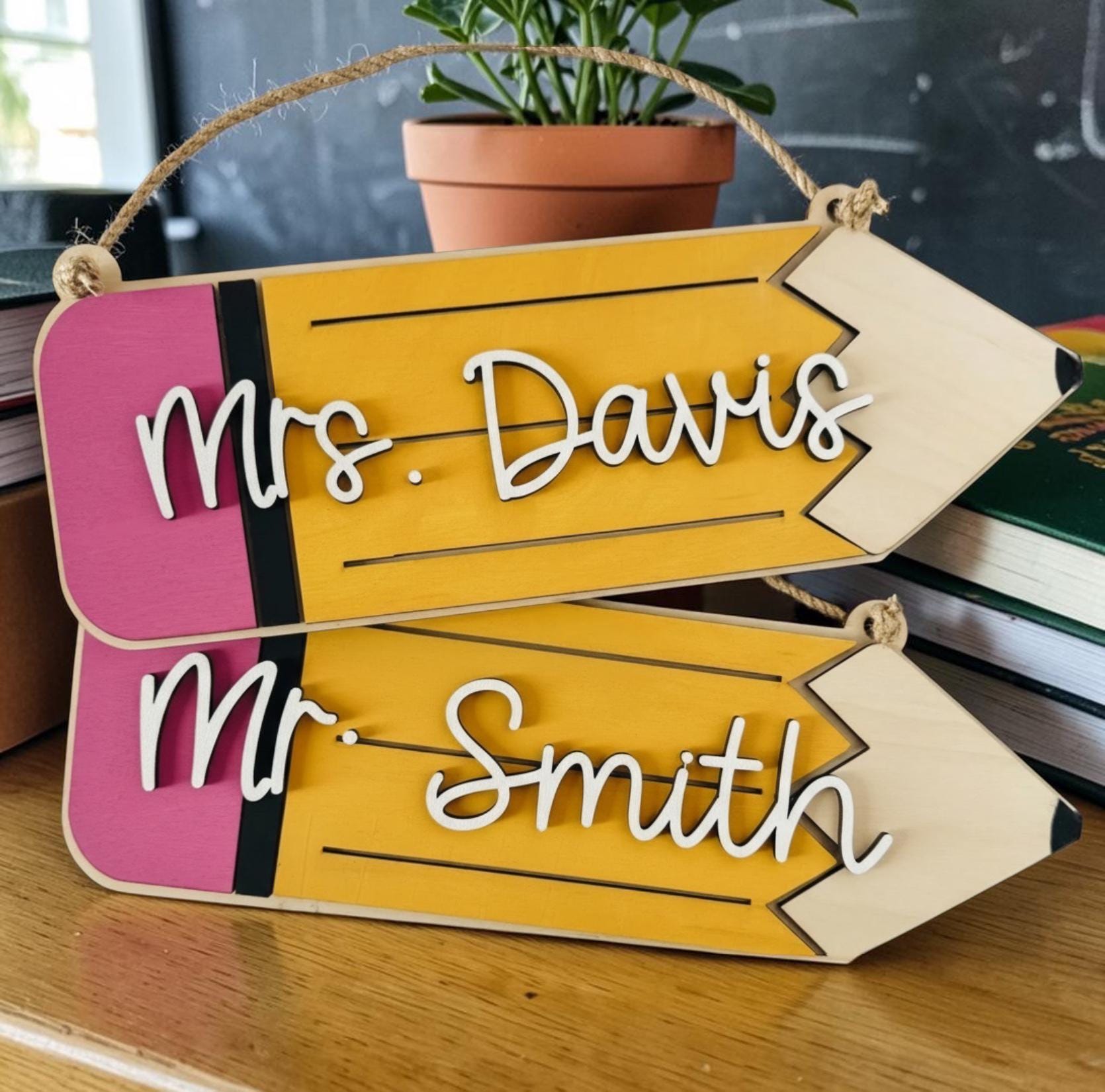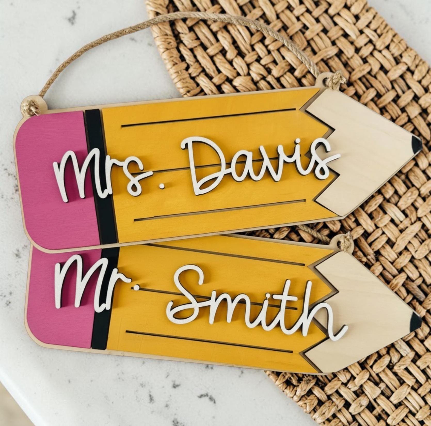 Personalized Teacher Name Sign, Pencil Classroom Door Hanger, Custom Teacher Door Sign, Back to School Teacher Gift, Classroom Decor