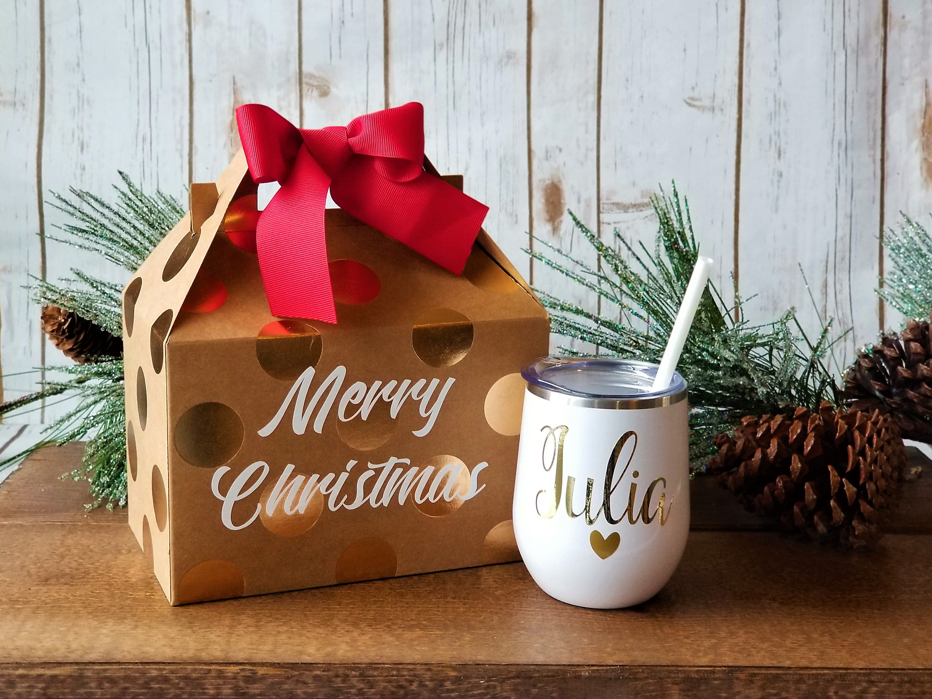 ON SALE! Christmas box, Christmas wrapping, gold box, gold polka dot box, personalized gift box, custom gift box with custom ribbon.
