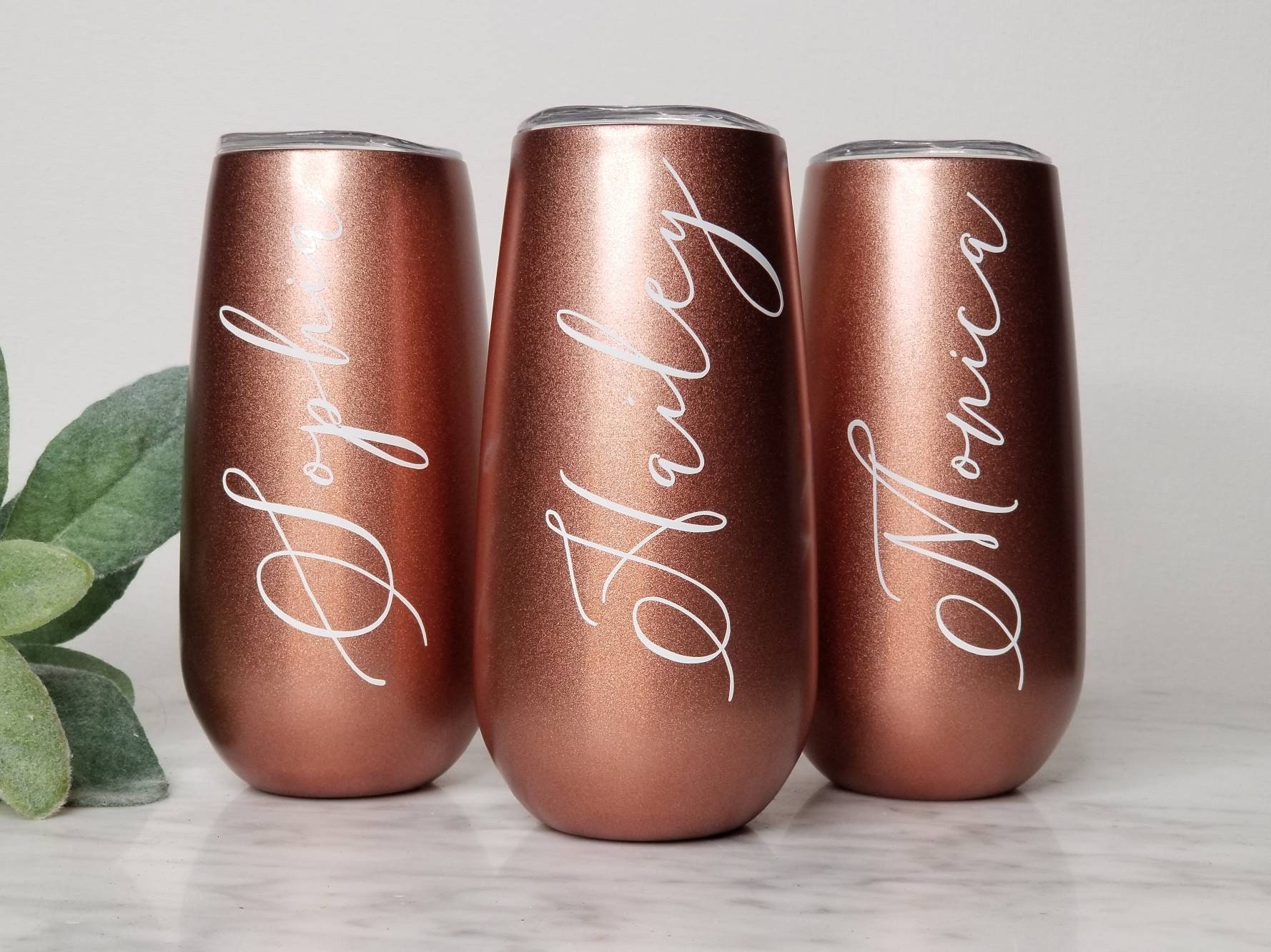 Champagne Flutes Bridesmaid Gift Wine Tumbler- Bachelorette Gift, Rose Gold, Custom Personalized Monogrammed Tumbler With Lid
